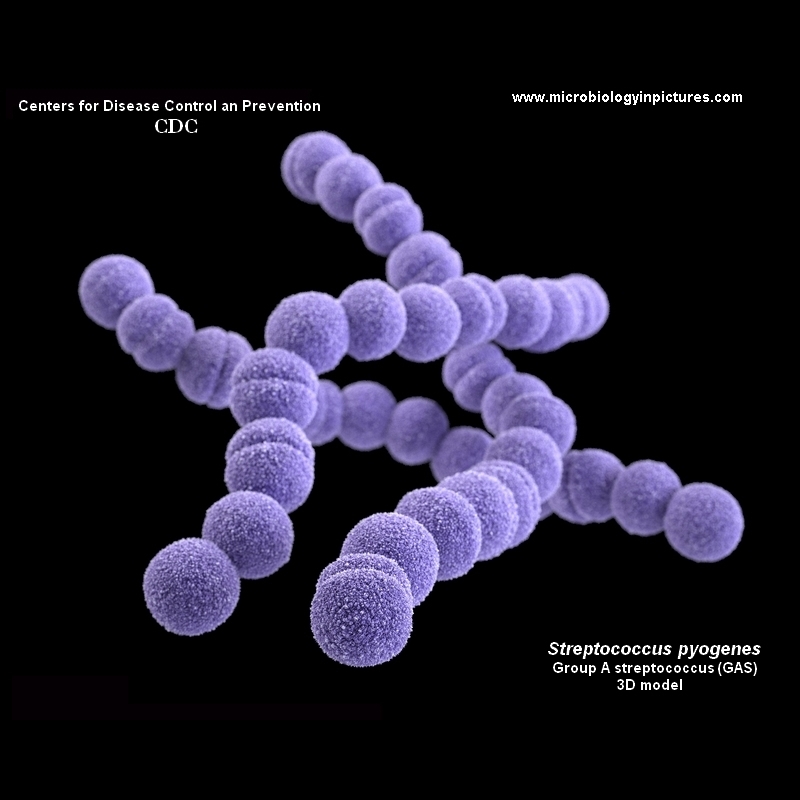 Streptococcus pyogenes is a spherical, Gram-positive bacterium that is the cause of group A streptococcal infections. S. pyogenes displays streptococcal group A antigen on its cell wall. S. pyogenes typically produces large zones of beta-hemolysis (the complete disruption of erythrocytes and the release of hemoglobin) when cultured on blood agar plates, and are therefore also called Group A (beta-hemolytic) Streptococcus (abbreviated GABHS).