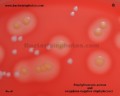 Individual colonies on agar are round, convex, and 1-4 mm in diameter with a sharp border. On blood agar plates, colonies of Staphylococcus aureus